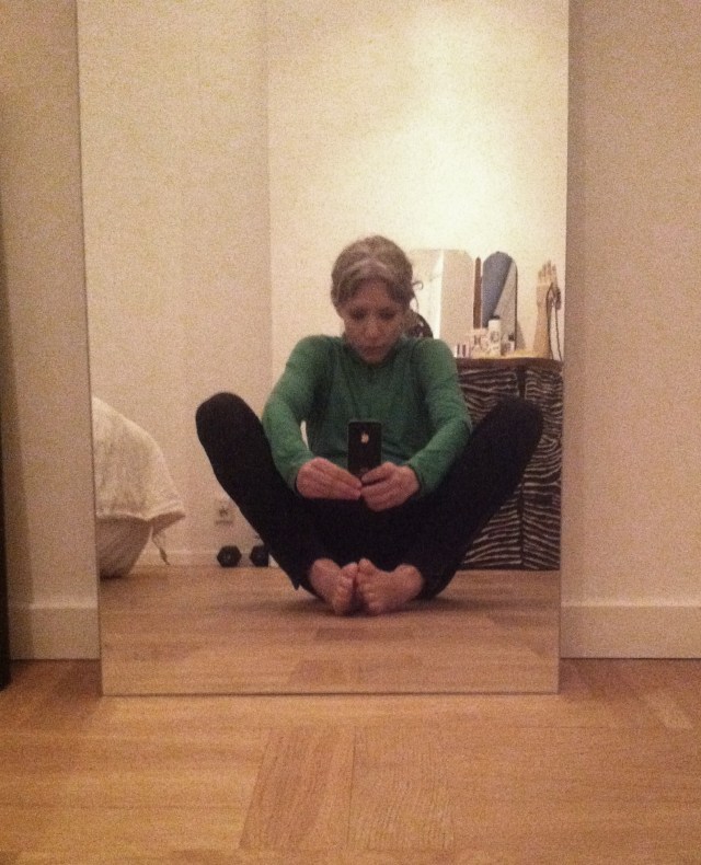 Värmde upp med några kilometer och sen långa intervaller med ståvila emellan. Övningen fick mig att tänka på ”Idioten” som vi ofta gjorde när jag spelade basket för länge sen. Fram och tillbaka, fram och tillbaka. Insåg också när jag stretchade att jag är precis lika ovig nu som på Idiot-tiden. Kommer aldrig någonsin kunna sitta sådär bekvämt i skräddarställning med benen helt nere i golvet och prata obekymrat. Jag skulle ge mycket för att kunna det.