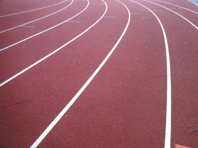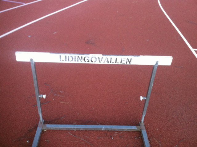 Idag blev det intervallträning på Lidingövallen. Alldeles mörkt när jag kom dit men sakta blev det ljusare och ljusare. Körde 8 x 1 km i 4,15 tempo. Det är speciellt att springa sådär på en platt bana, runt runt. Jag försöker alltid att ta ett varv i taget och bara fokusera på just det varvet, annars kan det kännas som man är en hamster i ett hjul. Obs! Låt er inte luras av bilden ovan, jag hoppade inte häck.