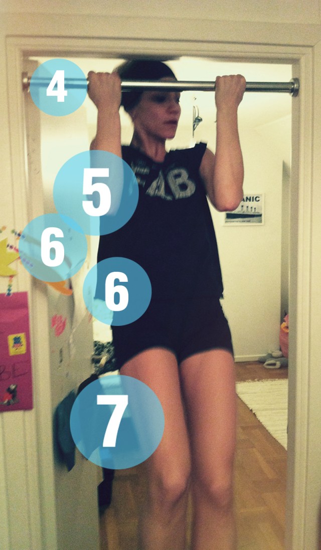 Och så en gång till. Om typ två veckor är tanken att jag ska klara 20 stycken chin-ups. 20! Vet i sjutton om det kommer gå men annars får jag nöta vidare. Idag var serien 4 – 5 – 6 – 6 – 7. Jag vilar ca 90 sek mellan varje set. Dela detta: Klicka för att dela på X (Öppnas i ett nytt fönster) X Klicka för att dela på Facebook (Öppnas i ett nytt fönster) Facebook Gilla Laddar in … Relaterade