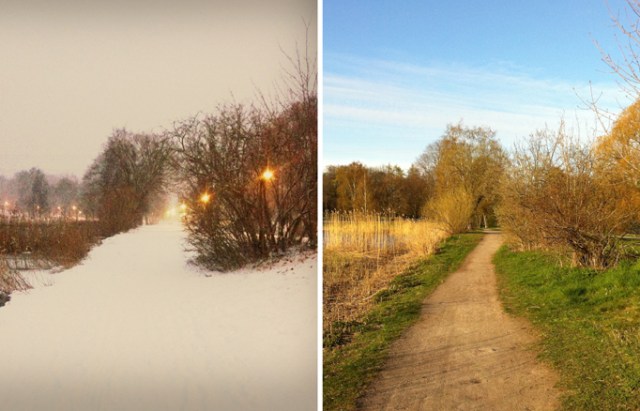 Var hos läkaren igår. Fick en salva för benet och tillsägelsen att bara jogga lätt fram till lördag. Så det gjorde jag tidigt imorse. Fast klockan var så lite kändes det som att det var mitt på dagen med den klarblåa himlen och ljuset. Mindes då en vintermorgon för inte så länge sen då jag sprang på exakt samma ställe och det var den motsatta känslan.