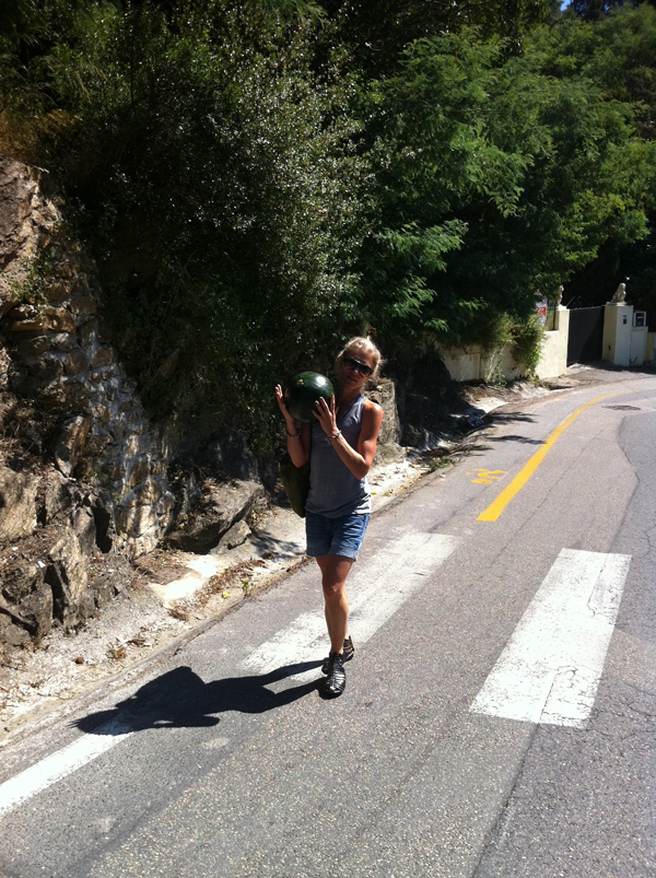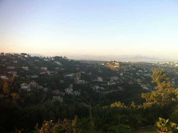 Landade i Nice vid lunch och allt var frid och fröjd. Tills jag inser att någon tagit min resväska! Jag hittar nämligen en identisk men som inte är min. Sicken downer! ”Alla mina springkläder och skor!” är det första jag tänker och jag ser framför mig hur jag får gå runt i fem dagar i svarta jeans och svart tröja. På väskan som inte är min sitter dock ett visitkort med telefonnummer, jag ringer upp men kommer inte fram. Jag tar med väskan i hopp om att han har min och vi beger oss till vårt hyrda hus i Golfe Juan-Vallauris, ca 5 km från Cannes. Det är inget hus, det är som ett litet slott med världens utsikt! Får äntligen tag på den svenska killen och ja, han har min väska! Medan de andra kilar för att äta lunch väntar jag på att han ska komma och vi ska göra ett väskbyte.