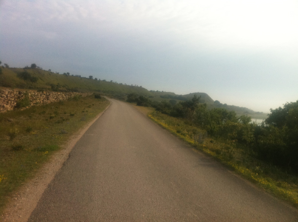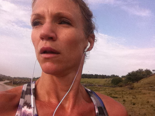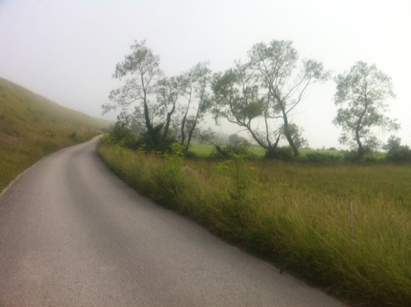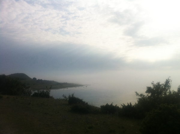 Lite engelska landsbygden över det hela, Morden i Misomar-känsla med dimman och kullarna och solen som bröt in. Några få bilar passerade i sakta fart men annar bara jag och svetten. Och just det, 40 flugor som hängt kring mitt huvud ända från start. Efter 17 km vände jag och sprang samma väg tillbaka. Mot slutet blev benen rätt trötta, ovana vid all asfalt, dessutom hade jag varit uppe sen 04.20 och jag blev irriterad på mig själv som planerat maten dåligt och gett mig av lite småhungrig. Efter 33 km var jag tillbaka vid vår lilla strand så jag stannde där och stretchade. Snittfarten hamnade på 4:50/km och med lite bättre mat i magen hade jag nog kunnat hålla lite snabbare tempo ända till slutet. Ok, det var lördagen. Jag hör av mig snart igen. Idag ska jag fixa gymmet i ladan.