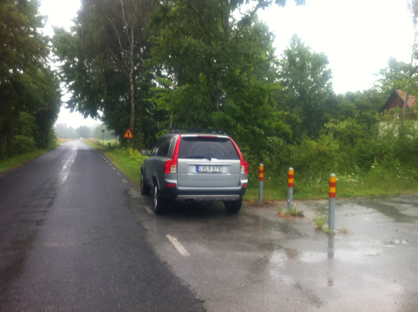Jo, den här bilden tog jag häromkvällen när jag åkte för att posta ett inlägg eftersom internet inte funkar där vi bor. Jag har efter mycket testande hittat stället där nätet precis börjar funka för mig och jag kan ladda upp bilder – och det är exakt här. Vid ett litet vattenpumpställe längs vägen. Här sitter jag i bilen och gör mina inlägg. Det bor några här tvärs över vägen och de måste ju undra vad sjutton jag håller på med för skum verksamhet eftersom jag alltid kommer ensam i bil, aldrig kliver ur för att hämta vatten, sitter med en dator i knät och sen bara vänder och kör tillbaka där jag kom från.