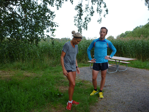 Åhh… klockan ringde så tidigt idag. Men det går inte att trycka på snooze när man har bestämt träff. Tassade upp och klädde på mig. Sen sprang jag ner mot Lidingöloppet där jag tog en kort uppvärmningssväng, vände tillbaka och sprang till Lidingö Tennisklubb. Där skulle Nils och jag mötas uppvärmda och redo kl 06.00. Inte för att spela tennis utan för att köra ett gammalt hederligt tröskelpass. Nils var proffsigt i tid. Vi har börjat få lite rutin på det här nu. Vi körde våra spänsthopp och sen bang! Iväg. Jag kan inte låta bli att tycka det är så märkligt med kroppen. Dagar då jag trott att jag ska ha kraft har ofta känts sämre och idag var jag riktigt trött då det varit intensiva dagar efter semestern. Men ändå så ställde benen upp och pinnande på riktigt bra. Svårt att veta om det bara var en bra dag eller ett litet framsteg. Spelar inte så stor roll. Sen kort nedvärmning och lite prat om att springa och psyket. Vi konstaterade att det är rätt krävande att träna inför långa lopp som marathon och Lidingöloppet, ja om man vill springa någorlunda snabbt. Hårt – men kul.