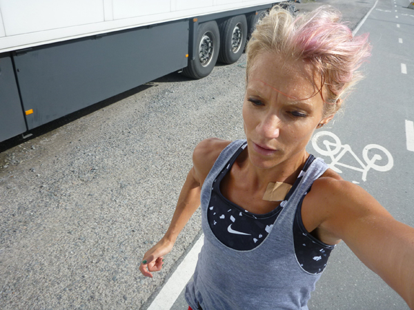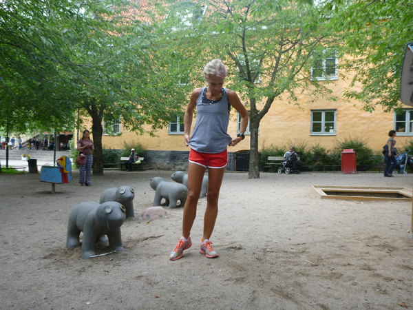 Sen bytte jag om i omklädningsrummet (bilen) för att kuta hem och värma upp söders gator till alla som ska springa Midnattsloppet ikväll. En km uppvärmning för att ta mig fram till Slussen. Sen ökade jag tempot. Ett väldans zickzackande längs Skeppsbron och Strandvägen. Jag anser mig numera vara ungefär lika snabb (ungefär) som en cyklist så jag lägger mig i cykelbanan så fort det finns möjlighet. Höll bra halvmarafart i 6 km (4:13/km) och sista fyra kilometrarna höll jag 4:33-tempo.