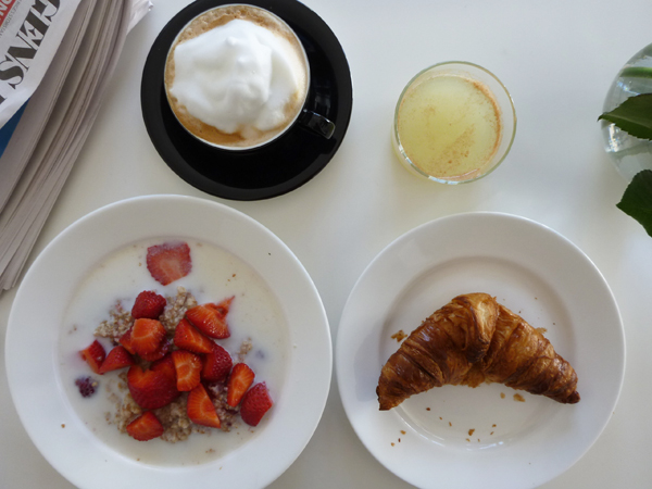 Helt slut igår kväll men vaknade och var…utvilad. Bästa, bästa känslan. Kroppen redo igen! Kände direkt av ljuset i rummet att det var fint väder ute och mycket riktigt, sol och blå himmel. Resten av familjen sov fortfarande (varav 3/5 i vår säng) men jag lyckades krypa ur täcket utan att väcka någon. Ner till Lidingöloppet en sväng för uppvärmning och sen ner mot Kyrkviken där jag brukar köra mina tröskelpass. Spänsthopp, javisst, och sen dags att kuta iväg. Som vanligt fokus på att hålla just fokus så egentligen var det skitsamma vad det var för väder, hann ändå inte ta in något runtom. Kändes bra i benen men jag tittade inte på klockan. Så lätt att bli styrd av den och tappa fokus på mjölksyrekänslan i benen. Rusade på och sen piip, klar! 20 minuter körde jag, 5,15 km och snittfart på 3:53 varav sista km på 3:46. Tror det är något slags rekord för mig på tröskelpassen, yeay! 5 km på 19:25! Kändes riktigt, riktigt bra!  Kanske var det den utvilade kroppen, köttet eller allt godis igår kväll, eller att jag sprang passet två timmar senare än jag brukar. Eller bara dagsformen. För det har man ju lärt sig vid det här laget, att allt kan man inte styra över själv; kroppen har sina favoritdagar helt klart. I alla fall så fick jag lite hopp om att fixa milen på sub40 någon gång. Efter det nedjogg i det fina vädret och hem till gröt med hallon och jordgubbar. Och kaffe och croissant! På tal om croissanter, vill ni kolla på en rolig reklamfilm som inte alls handlar om löpning och som en fd kollega till mig gjort, klicka här Vill uppmärksamma er på att juicen i glaset kommer från våra egna äpplen. Vilken idyll va? Plocka äpplen i trädgården och göra egen juice. Så oerhört präktigt. Fast jag är nöjd med det för tidigare har vi bara låtit äpplena vara, ingen av oss gillar äppelpaj och jox, någon kanske plockat och käkat ett men annars har de trillat ner och ruttnat till fåglarnas glädje. Men nu är det juicefestival!