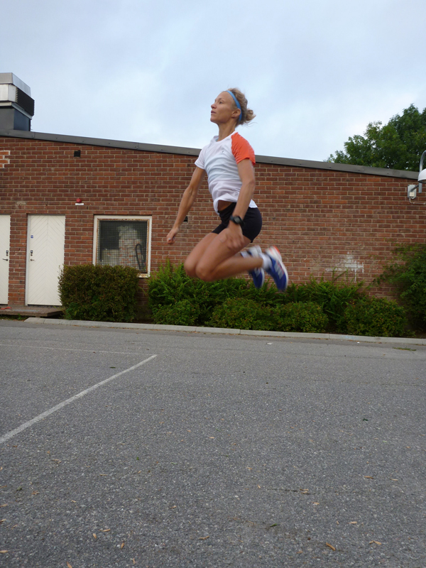 Efter uppvärmningen spänsthopp och sen dags att köra igång. Kände mig ändå lätt i benen när jag satte av. Jag flåsade ut och förbi Hustegaholm och vände efter tio minuter för att kunna springa flackt. Tappade fokus för en stund och lät tankarna fladdra iväg och tappade nog några sekunder där, man måste hela tiden foka för att springa rätt. Trodde det gick lite snabbare men snittet på mina 20 minuter låg på 3:59.