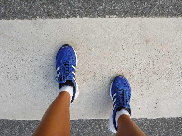 Upp tidigt. Dags för torsdagströskel. I de nya skorna! Till min glädje har de kortat skosnörena på höstens modell, på mina röda är de alldeles för långa trots att man gör dubbelknut. Först uppjogg. Alltid en seg känsla så tidigt på morgonen, man kan bara inte förstå hur man ska kunna ösa på för fullt, känns som en omöjlighet.