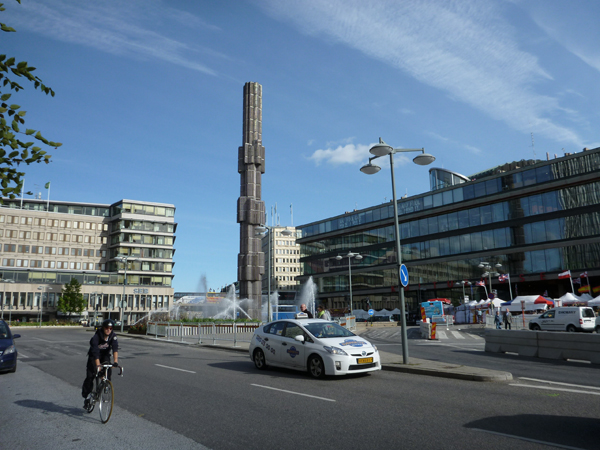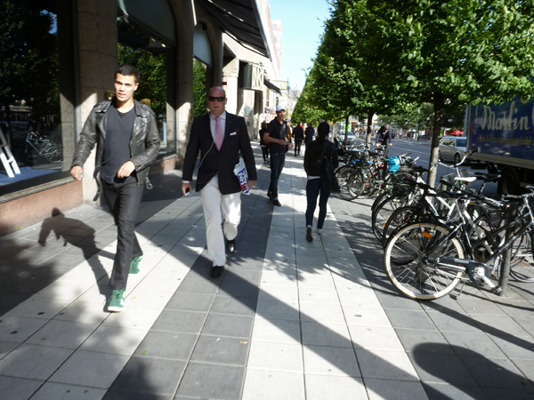 Kände mig som en udda fågel när jag kom rännandes nerför Hamngatan, dessutom fotograferandes i farten. På tal om udda fågel: bilden här nedanför som jag tog på Sibyllegatan tycker jag säger så mycket om att vara löpare i stan. När man zickzackar sig fram så snällt och försiktigt man kan – och så får man ändå den här blicken. Det är liksom en blandning av irritation och total oförståelse i den. Som att man vore helt galen som sprang.