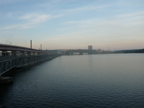 Upp för att köra tempopass. Förvånande nog var det varmt och skönt ute så det blev kortärmat. Först 3 km uppvärmning fram till Lidingöbron.