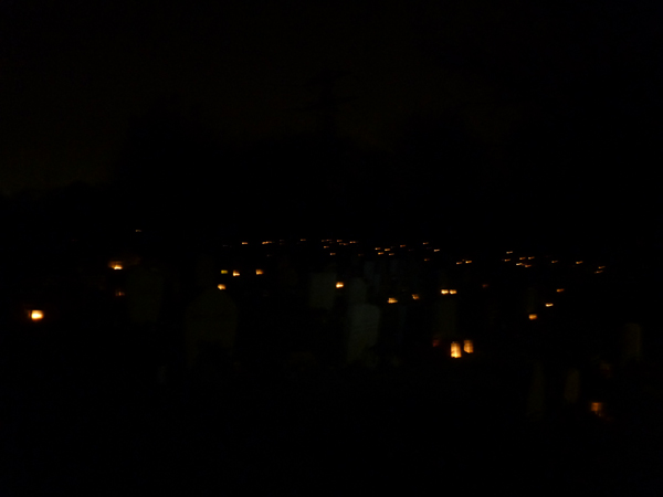 Sprang förbi Kyrkogården på vägen tillbaka mot Kyrkviken. Så vackert med alla ljusen som fortfarande brann. Jag fortsatte längs vattnet ut mot Elfvik. Aningens aningen ljusare, men egentligen fortfarande kolsvart. Vände tillbaka hemåt efter ett par km då klockan började bli mycket. Blev totalt 17 km. Nu löpvila i fem dagar… gaaaah! Ni andra kan väl springa för mig så länge? Jag själv får köra fullt fräs på magen och armarna under tiden.