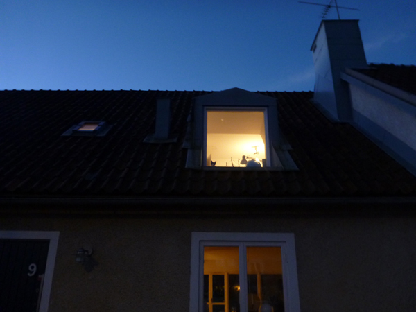 Totalt 10 km. 10 km utan att ha ont. Det känns fantastiskt. När jag stannade utanför vårt hus och tittade upp mot fönstret på övervåningen, såg jag de här små öronen sticka upp. Kuba som satt och spejade mot mig. Jag älskar de där små knaskatterna.