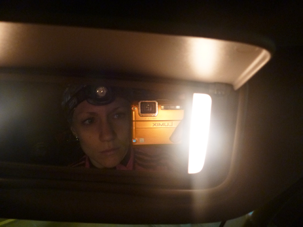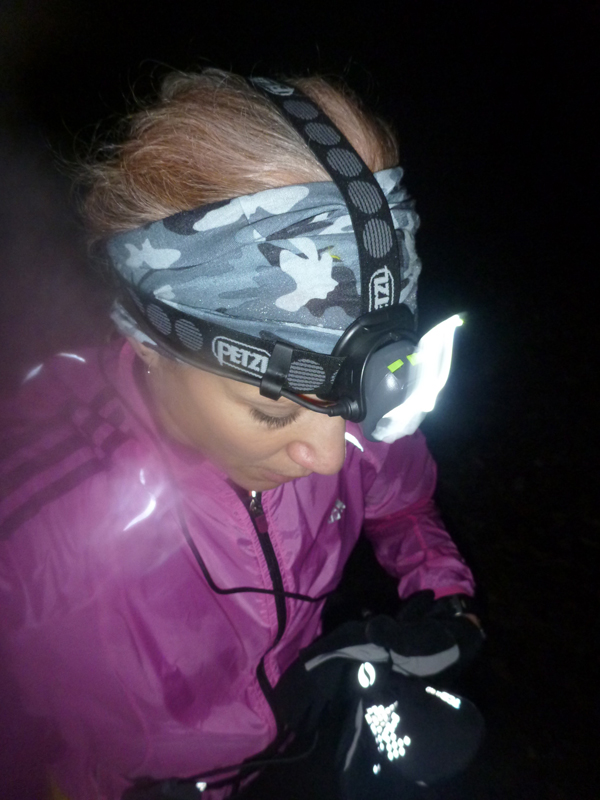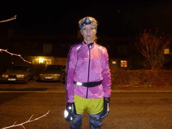Jag såg en kvinna med schäferhund och ficklampa samt två cyklister när jag sprang i skogen, annars bara det kolsvarta mörkret. Och massa träd. Totalt 10 km. Såhär såg jag ut efter det:
