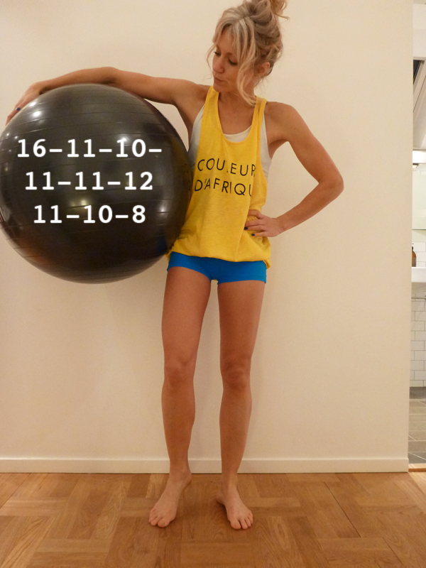 Och sen gjorde jag magstyrka på gymbollen; sit-ups, plankan, rulla in boll mot rumpan, Danish Special och lite annat.