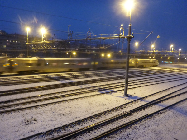 Totalt 10 km. Framme vid jobbet sprang jag ner till Bangården. Inte vet jag varför, fötterna bara styrde mig dit. Kanske var det ögonen som ville se något urbant.