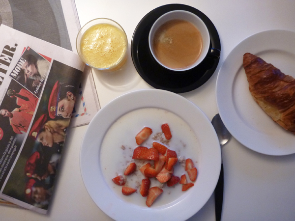 Det var på rätt stela ben jag tog mig fram och det fick räcka med en kort tur. Sen fick vi skynda oss att duscha för att hinna med frukosten. Stressen man känner när man får sån här god frukost, hur ska man hinna smaka allt? Det är omöjligt!