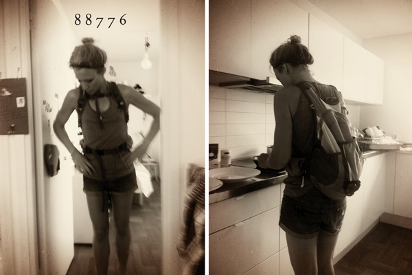 Dags för dagens chin-ups. Körde serien 8-8-7-7-6 med ryggsäcken. Måtte dessa vikter ge resultat, det är ju rätt mycket segare att köra med dem. Jag pausar ca en minut mellan varje set vilket är bra för då hinner man samtidigt laga lunch. I övrigt har jag lite känning i luftrören efter maran, jag gissar pga kylan i kombination med ansträngningen. Benen vill så gärna springa men jag ha fått order om att ta det lite lugnt med löpningen ett par dagar så jag kör lite styrka istället.