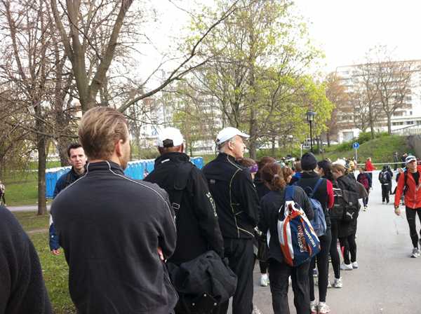 Men sen var jag ensam. Jag hade nämligen rått min lilla hejarklack att åka till badhuset och bli blöta istället för att bli det av att stå och heja på mig i regnet. Jag kom precis i tid för att se andra starten av 10-kilometersloppet.