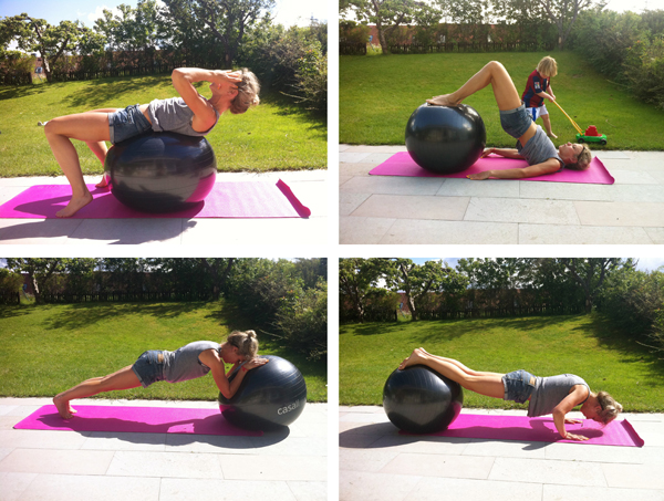 Kan inte minnas när jag sist vaknade på Midsommarafton och det var fint väder ute. Så bra för då kan man göra lite bollövningar utomhus. En massa mage och en del rygg blev det idag. Bland annat övningen ovan där man först är utsträckt och sedan drar in bollen mot magen, sedan sträcker ut sig igen och avrundar med en armhävning. Och så där håller man på ett tag. Allt ackompanjerat av kranstillverkning med barnens farmor och farfar. Har kommit på att det bästa sättet att få sina styrekträningsövningar gjorda är att bara köpa på mitt i vardagen när man har några minuter över. Inte hålla på att planera exakt när det ska ske utan bara göra. När som helst. Var som helst.