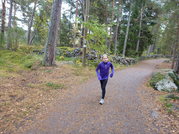 Sömnen hade nämligen återigen varit bristfällig. Först kunde jag omöjligt somna på tisdagkvällen för jag var hungrig. Till sist gick jag upp och åt några mackor. La mig igen och precis när jag skulle somna började det åska och blixtra. Barnen blev rädda och kom upp till vår säng och det var allmänt rörigt. Till sist låg jag och äldsta dottern kvar i vår säng. Hon somnade till sist men jag blev – återigen! – hungrig. Ignorerade det men magen kurrade och kurrade och vägrade sluta så till sist fick jag gå upp och äta lite till. Tillbaka till sängen – och så äntligen slockande jag. Det blev bara några få timmars sömn men fastän jag var trött där på morgonen så ville jag springa. Dagen efter skulle vi nämligen åka hem till Stockholm och jag ville inte missa mina sista fina turer.