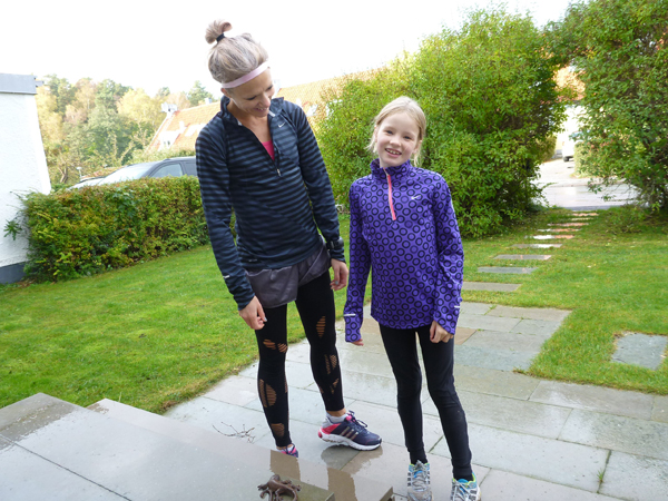 Febe hade fått nya springskor så när vi kom hem var vi såklart tvungna att provspringa dem. Eller, hon provsprang dem och jag fick hänga med i mina skor. Se så glada vi ser ut!