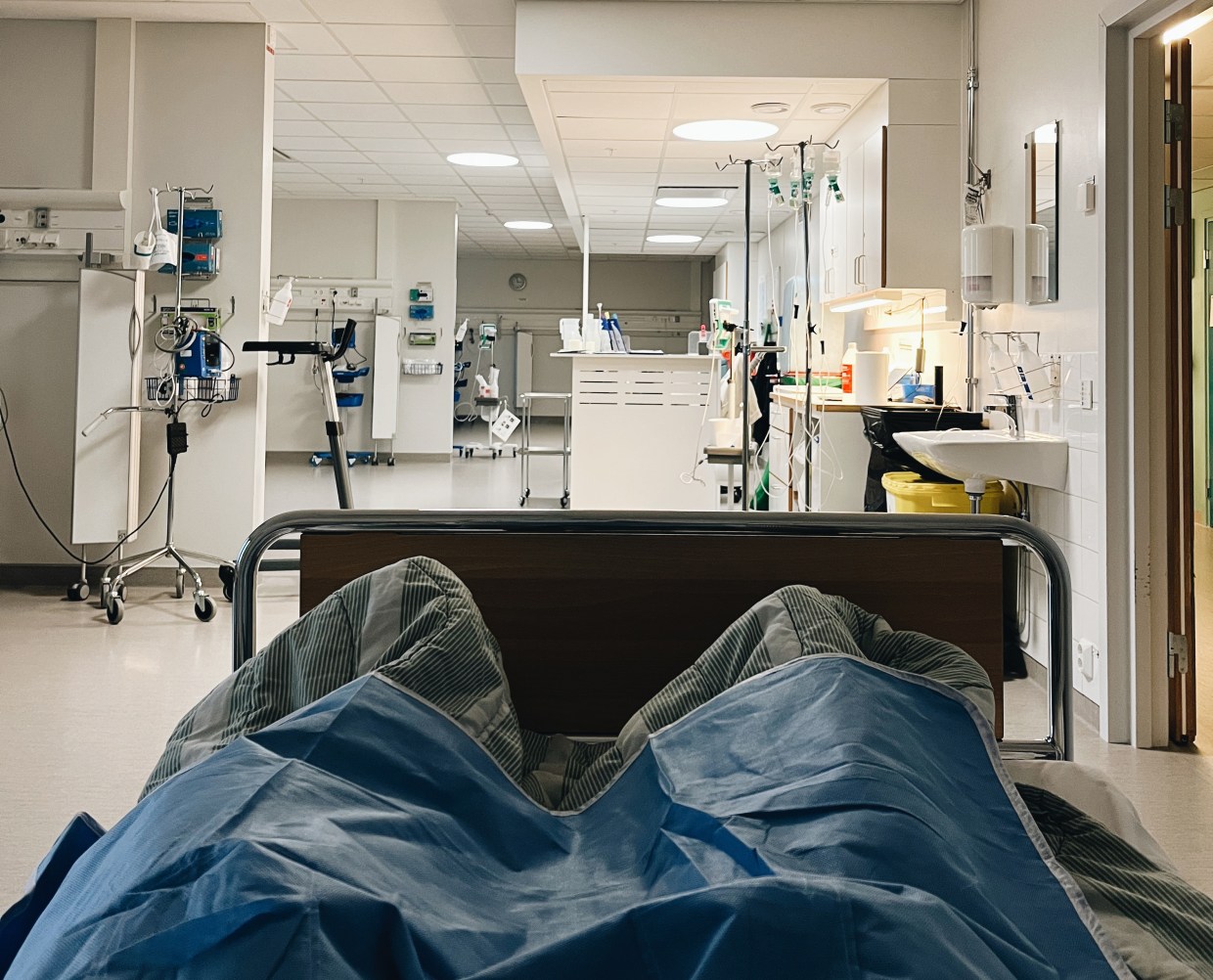 Efter en stund säger sköterskan till mig att det är dags att tvätta mig en sista gång med Descutan (om jag var torr i ansiktet innan så var det bara uppvärmningen). Därefter är det sjukhuskläder på och sen krypa ner i sängen. Jag får dropp med lite bedövning men känner knappt av den.