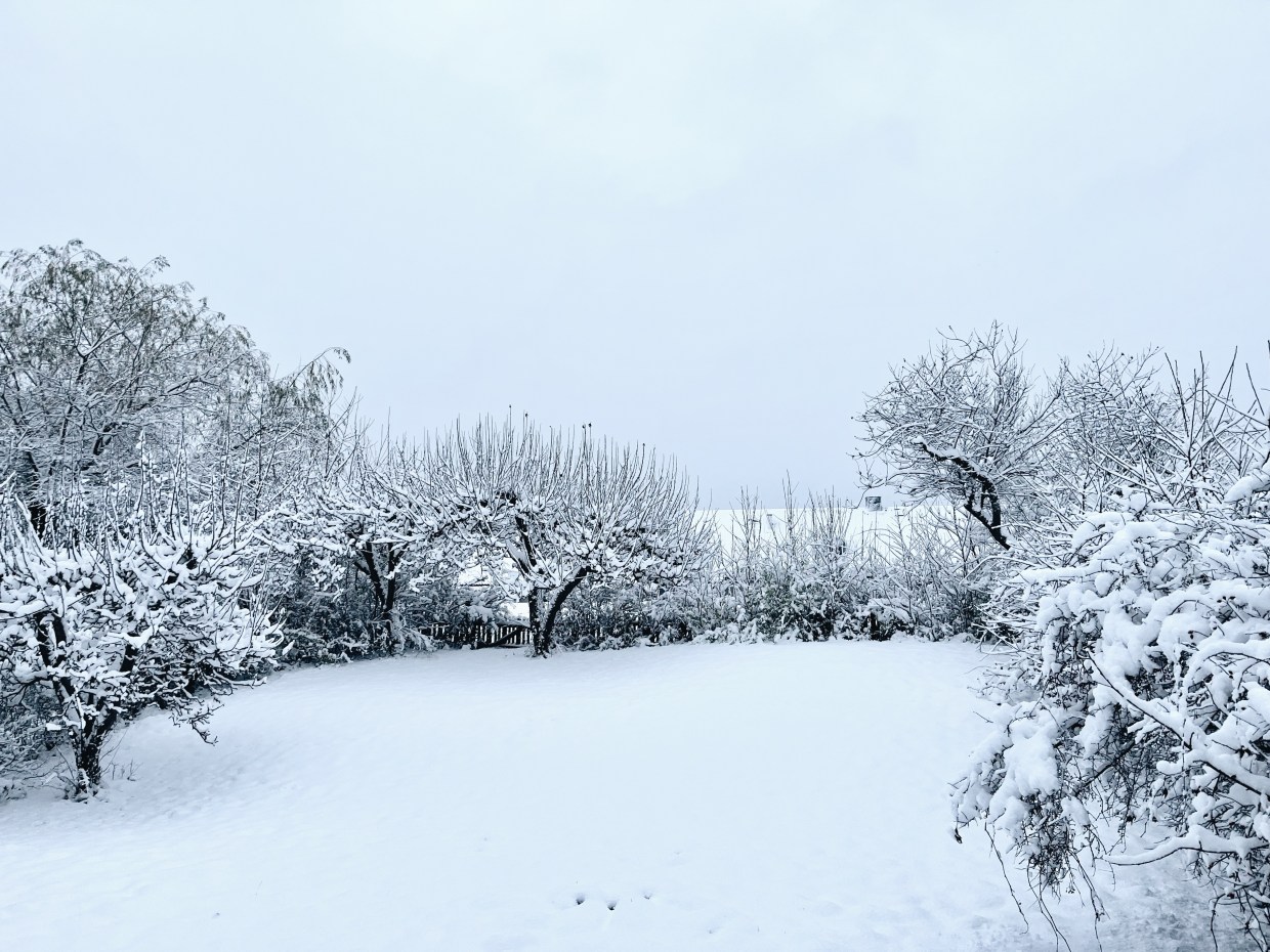 När jag kom hem stod ett rådjur på baksidan av vårt hus och käkade på en buske. Här spanar vi in varandra.