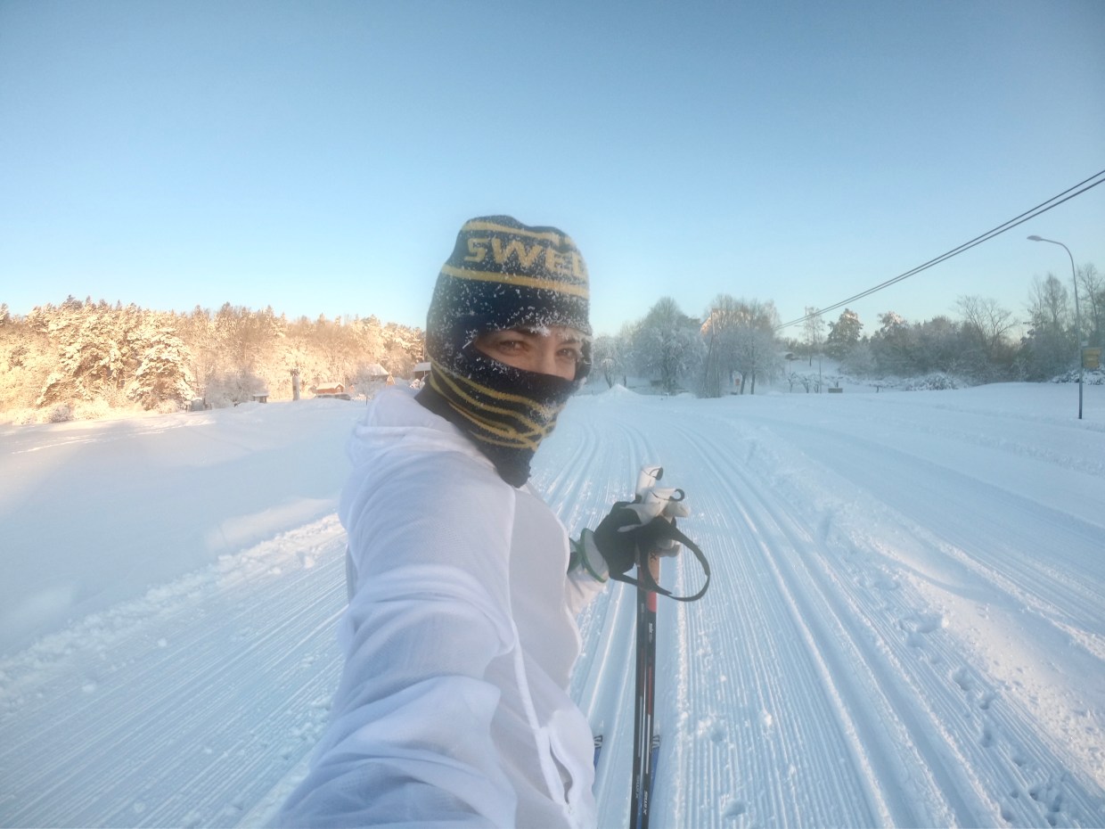Tog en liten extrasväng för att få till några fler kilometer. Ute på Gärdet såg jag en… gångare! Dem ser man typ annars bara på TV när det är något mästerskap. Men här var alltså en livs levande gångare. Tur jag hade kameran med mig.