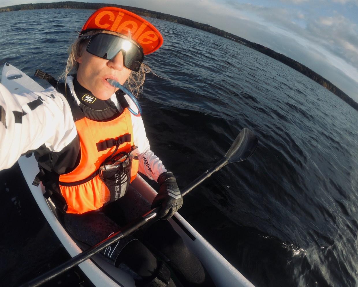 Insåg dock att jag borde tagit mina handflaskor också, hade för lite dricka med mig och det var mer än en mil kvar. Det fick bli ett till litet stopp även om det tar emot att stanna mitt i ett långpass. Men läget var bada eller dö. Då valde jag att bada. Här är jag efteråt. Även om det inte syns så kände jag mig som en ny människa.