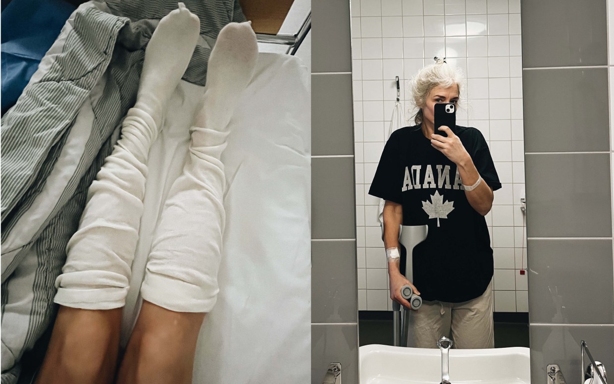 Vid halv ett kommer två sköterskor och rullar ned mig till operationen. Narkosläkaren är en 65-årig kvinna med en otrolig energi. Hon berättar allt om sin irakiska familj och jag försöker hänga med så gott jag kan, för nu börjar jag bli lite mjuk i skallen. Det grejas med mig, och sen får jag ryggbedövning. Minns att jag känner en sån tacksamhet över att alla pysslar och donar med mig, och jag gråter en skvätt. När jag inte kan känna mina ben längre rullas jag in i operationssalen. En sköterska berättar att hon kommer hissa upp mitt ben för att kunna rengöra ordentligt. Bra. Är det något jag är extremt orolig för så är det nämligen att få en infektion. En man står vid en dator och jag ser den senaste röntgenbilden av min höft på skärmen. Sen får jag en syrgasmask lätt placerad över min näsa och mun och de säger att jag snart kommer somna. Och det gör jag.