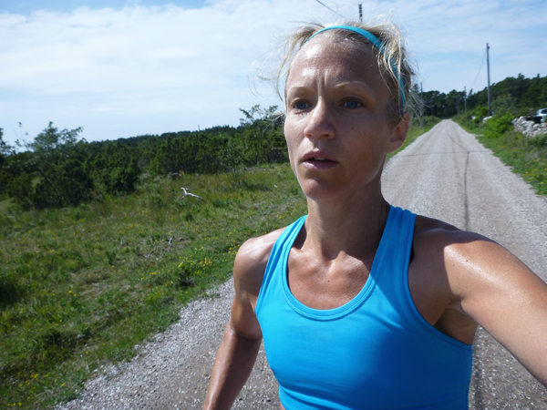 Fem km uppjogg och sen var det då alltså dags för tröskelintervaller. Har varit ett väldans tröskande sista tiden måste jag säga. I alla fall så var det varmt ute, klockan var prick 12.00 när jag satte fart på grusvägen. Som tur var fläktade det lite. Jag vill dock påstå att jag blivit härdad av alla de fuktiga veckorna, för även om det var riktigt varmt nu så tyckte jag att det funkade bra. Sista biten spurtade jag på asfaltsvägen, då blev det riktigt bra fjong i fötterna. Klar!
