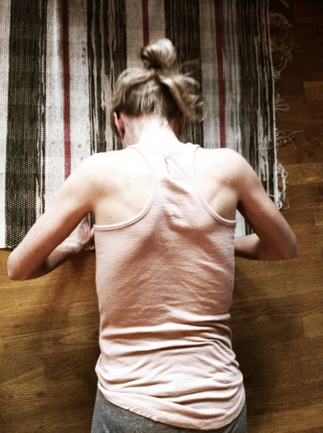 Godmorgon! Nu har det blivit fredag även om det känns som måndag hela veckan här på bloggen i och med att jag gör exakt samma sak varje morgon. (Kom ihåg att ni fritt kan lämna bloggen precis när ni önskar, ni behöver inte tycka synd om mig för det, jag sliter på oavsett.) Precis, klockan ringde, jag stönade lite, stängde av regnet, gick raka vägen ut till badrummet, satte i linserna, drog på mig ett par shorts och sen nerför trappan för att rehabba. Här ser ni mig i full action!