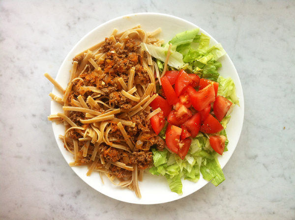 Sen förstår ni, sen köpte jag med mig mat från Brickan. Massa grönsaker och bönor, kyckling och så pannkakor med sylt och grädde till efterrätt. En hederlig byggjobbarlunch, precis vad jag behövde.