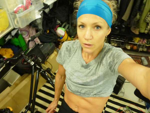 På torsdagen klev jag upp, ner i shortsen och ut i garaget. Inte för en lång cykeltur utan bara för att bli varm innan det var dags för rörlighet och styrka. Jag fick börja med att gräva fram cykeln. Den var nämligen helt igenmurad av returpapper som vi bara slängt ut i garaget.