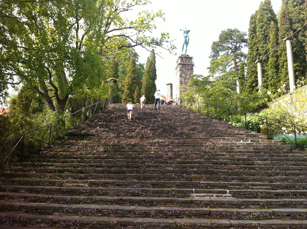 Herregud vad jag längtade efter det här sista biten hem! Jag var så otroligt törstig och hade typ fått flingsalt på huden av all svett. Totalt 28 km med 5 km fartökning. Bra och jobbigt pass, mycket backar. Efter det här lunch och sen med barnen till Millesgården.