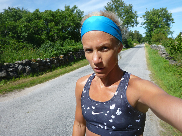 Ja nu har det ju dykt upp lite moln på himlen men då jag skulle köra mitt långpass, ja då var det strålande sol och varmt. Jättevarmt! Jag drog ut vid elvatiden. Hade först tänkt springa in till stan och runt Djurgården men ångrade mig och sprang istället till Lidingöloppsstarten. Vid elva km så hörde jag hur det rasslade till framför fötterna på mig. En stor huggorm som slingrade in i gräset bredvid stigen! Ahhh, jag hatar ormar! Och krokodiler! (Jag älskar dock ormmönster.) Aningen chockad av naturupplevelsen höjde jag lägligt farten då passet för dagen var just långpass med fartökning. Sprang ca 5 km i maratempo. Oh, det var jobbigt, ska jag säga. Det var varmt! Sprang på den planaste biten av Lidingöloppet för att kunna hålla tempot. Drickan tog slut alldeles för tidigt idag så de sista 13 kilometrarna fick jag snåla vilket är en oskön känsla när det är så varmt.