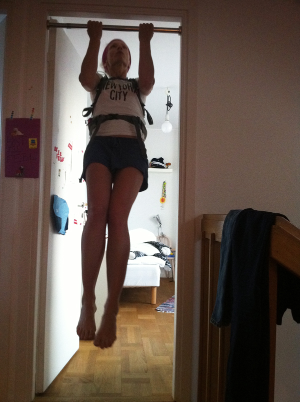 Fick ”hjälp” av en tiger. Sen körde jag tåhävningar och armhävningar men jag blev alldeles lila i ansiktet på armhävningsbilderna så jag spar dem till en annan gång. Eller inte.